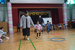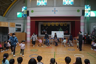 今月のゲームは「クリスマスフープとりゲーム🎵」