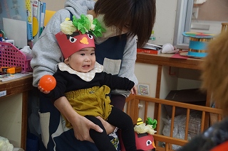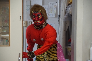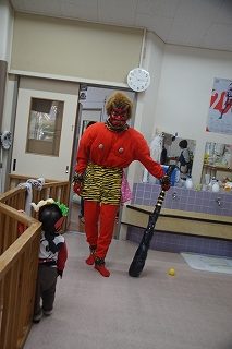 もも組からやってきたオニ…。少々リアルな顔なのでギャー💦キャー💦の大騒ぎ( ;∀;)