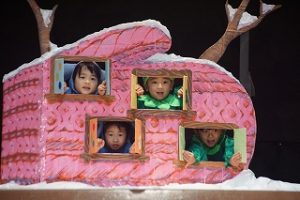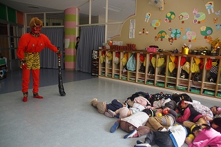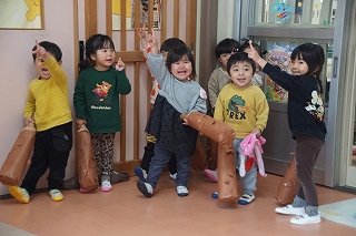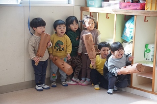 最後にたんぽぽ組…。おゆうぎ会の劇でする「かさじぞう」のポーズで待ち構えていました…。