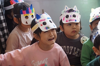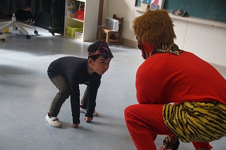 最後に体育館に集合し、オニにおゆうぎ会頑張れよ!とエールをもらい、それぞれの心のオニもしっかり退治することができました😊