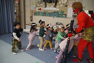おっと💦担任の先生が捕まってしまった💦でも、元気におゆうぎを披露して無事に救出できました✨