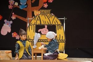 毎年恒例のおやぢ劇!今年は「あかずきんちゃんと2匹のこぶた」でした。お父さんたちの演技力に毎年あっぱれです!忙しい中、夜集まって練習を行っていました。