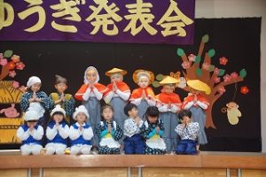 2月7日はおゆうぎ会でした!あちこちでインフルエンザや胃腸炎の感染症が流行っている中、この日はお休みがなく全員でおゆうぎ会を迎えることができました!それがなによりもなによりも嬉しかったです。たくさんのお客さんがいる中、みんなおゆうぎや劇を普段通りの姿で踊っていました!素敵でした。