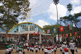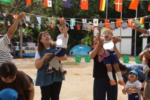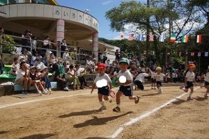 今年もそんな予感のする朝でしたが、「大丈夫!!」と気合いを入れて外で実施しました。朝、雨がぱらついたり、雨雲が横切ったりとハラハラしましたがどうにか最後まで園庭で予定の日程を行うことができました😄