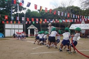 今年もそんな予感のする朝でしたが、「大丈夫!!」と気合いを入れて外で実施しました。朝、雨がぱらついたり、雨雲が横切ったりとハラハラしましたがどうにか最後まで園庭で予定の日程を行うことができました😄