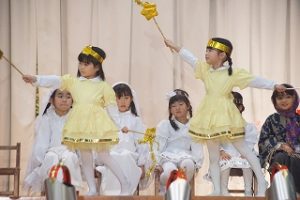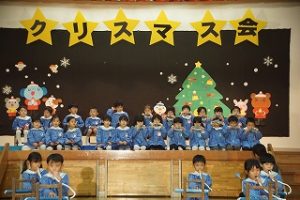 20日(土)はクリスマス会でした。みんなそれぞれの役になりきって練習を行い、いよいよ本番!衣装を着ると雰囲気や子どもたちの表情が引き締まり少し緊張した様子。でも、今までの中で1番堂々とした「世界のはじまり」「イエス様のお誕生」でした。