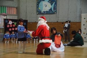 もう一つのお楽しみ💕めいろうに一足早くサンタさんがきてくれました。今年は、金縁メガネがよく似合う白髪の長身サンタさん💓サンタさん来てくれてありがとう!!みんなの目がキラキラ✨輝いていました(*^_^*) 母さんヤギ
