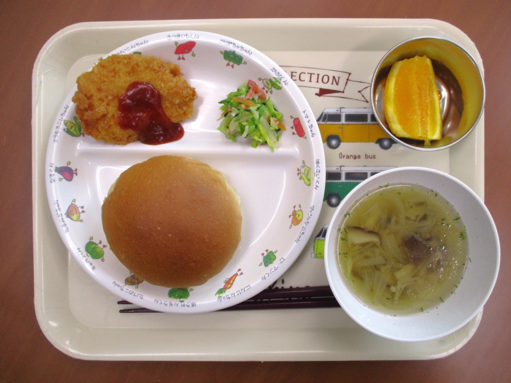 ※0.1.2歳児は「牛乳、丸パン」でなく「青菜ご飯、麦茶」の提供となります。また、本日めいろうこども園は弁当日となります。