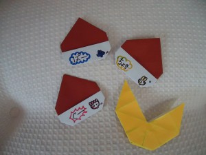 今回は折り紙でできる簡単ないがくりじゃんけんを作ったり(じゃんけん大会では新婚M先生が優勝♪)入園式で披露する手袋指遊びを作ったりしています。楽しみにしていてね☆ minami