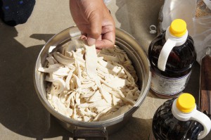 細いのや太いの面白い形のうどんが出来上がり。