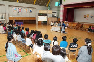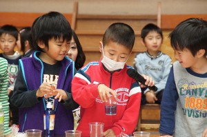 年長児はみんなに向けて実験を披露しました。