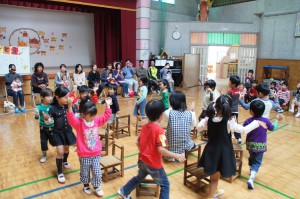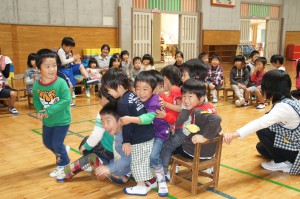 イスとりゲームも盛り上がりました(^o^) 1つのイスに9人も座ったよ!