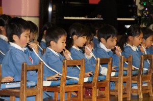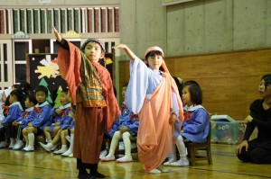 次は年長児・年中児・ひかりのこクラブのイエス様のお誕生の劇です。
