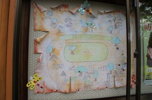 お帰りの時間、体育館にみんなで集まり、宝箱を開けてみました。鍵がぴったり合い、そおっと開けてみると、中にはまたまた手紙、そして地図とお菓子が入っていました。手紙には、『おめでとう。よく鍵を見つけたな。今度はコインを幼稚園に隠した。地図を見ながら探してくれ。~海賊南より~』と書いてありました。