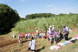 パンダバスに乗り、沖田のおじちゃんのお芋畑へ!!