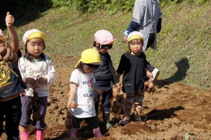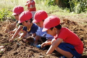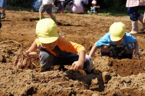 その後、いよいよお芋ほり!「見てー大きいのがとれたよ!」 「あっ!ちっちゃいのだったあ(^_^;)」