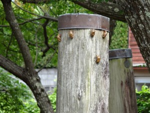幼稚園はあっという間にセミの幼稚園に。たくさんのセミがお話していますよ。子どもたちの声が聞こえないくらいに…