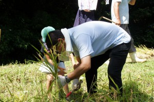 沖田のおじちゃんも来て下さり保護者の方も一緒に稲刈りの体験を行いました。