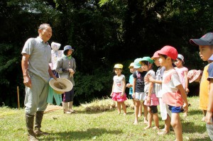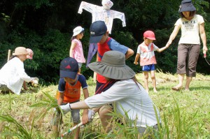 そこで年長児を対象に一斉メールを配信し8月3日に稲刈りを行いました