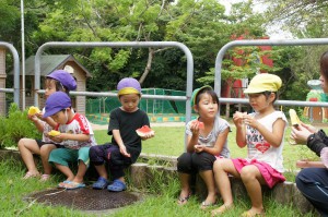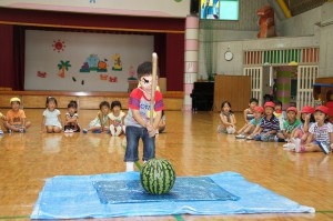 8月1日の夏期保育。稲刈りしたり、スイカ割りしたり、みんなでいっぱい遊ぼうね♪