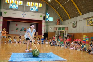 たくさん汗もかいたあとはM先生の実家から持ってきて頂いたスイカを食べました