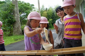 さて外ではそうめん流しもしました。雨が心配でしたがなんとか降ることなく予定通りおいしくいただきました