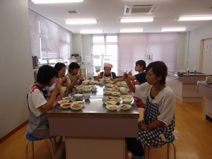 実は・・和え物の調味料を担当した私ですが、ここでも料理下手が発揮され使わない油を調味料に投入!でも講師の先生が「よかよか・・失敗は誰にもあるから・・!」といい、笑顔でいってくれました。失敗を大きな気持ちで包み込み、大丈夫だよ!と背中を押して下さる講師の先生の言葉と笑顔に癒され励まされ学んだ一時でした。