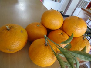みんなに自己紹介!少し緊張です。 幼稚園で収穫したみかんを一緒に食べたよ。