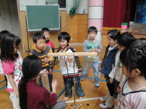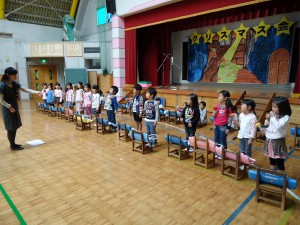 年長さんは、鍵盤ハーモニカとベル、トーンチャイムにチャレンジ中。少しずつきれいな音色が重なり心がひとつになっていっています。実は・・間違えないように先生たちも必死です^^;