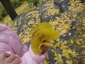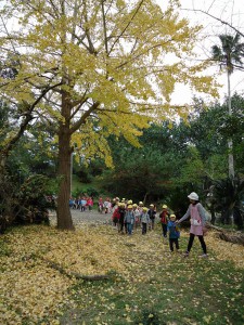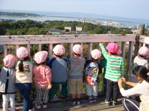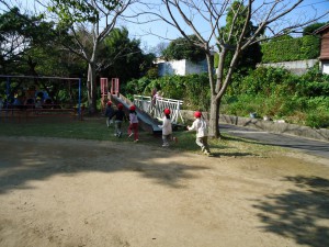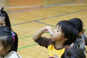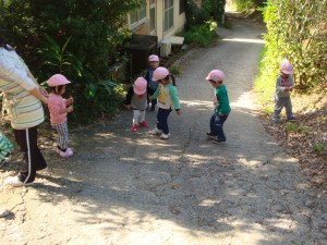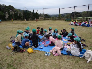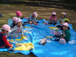 幼稚園に着いてからは良いお天気の中、お庭でお弁当を食べました