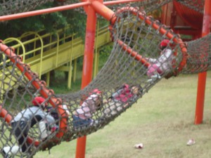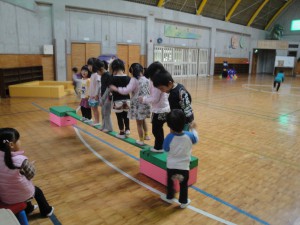みんなで平均台にチャレンジ中。この後、分かれてじゃんけんゲームをし始めましたよ!