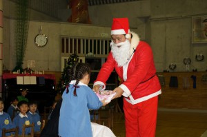 ♪あわてんぼうのサンタクロースを歌ってくれました。歌詞が分からないかも・・・と子どもたちへの配慮も考えて歌詞カードも大きく作ったのだそうです。優しいですね。