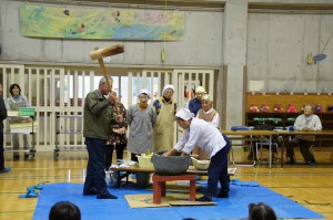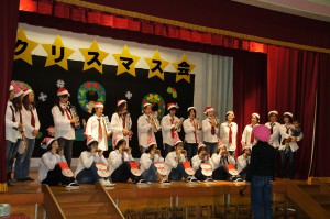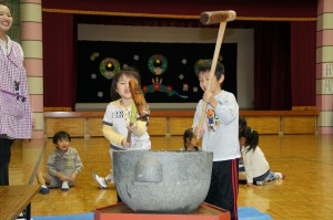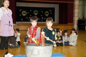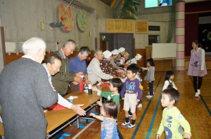 最後におじいちゃんたちにお歌とお餅のプレゼントをしました。楽しいひとときとなりました。